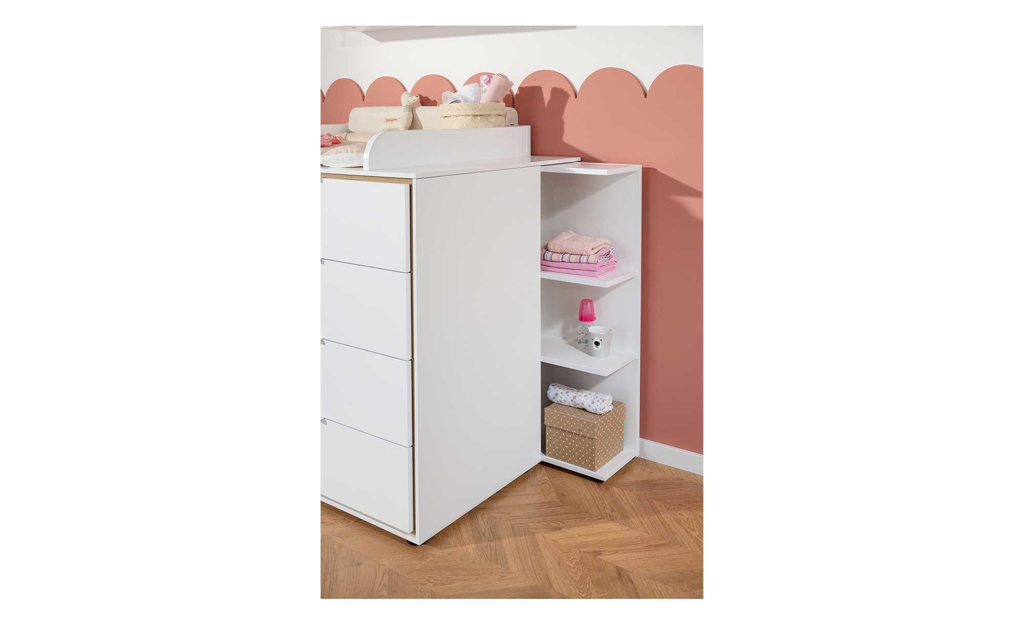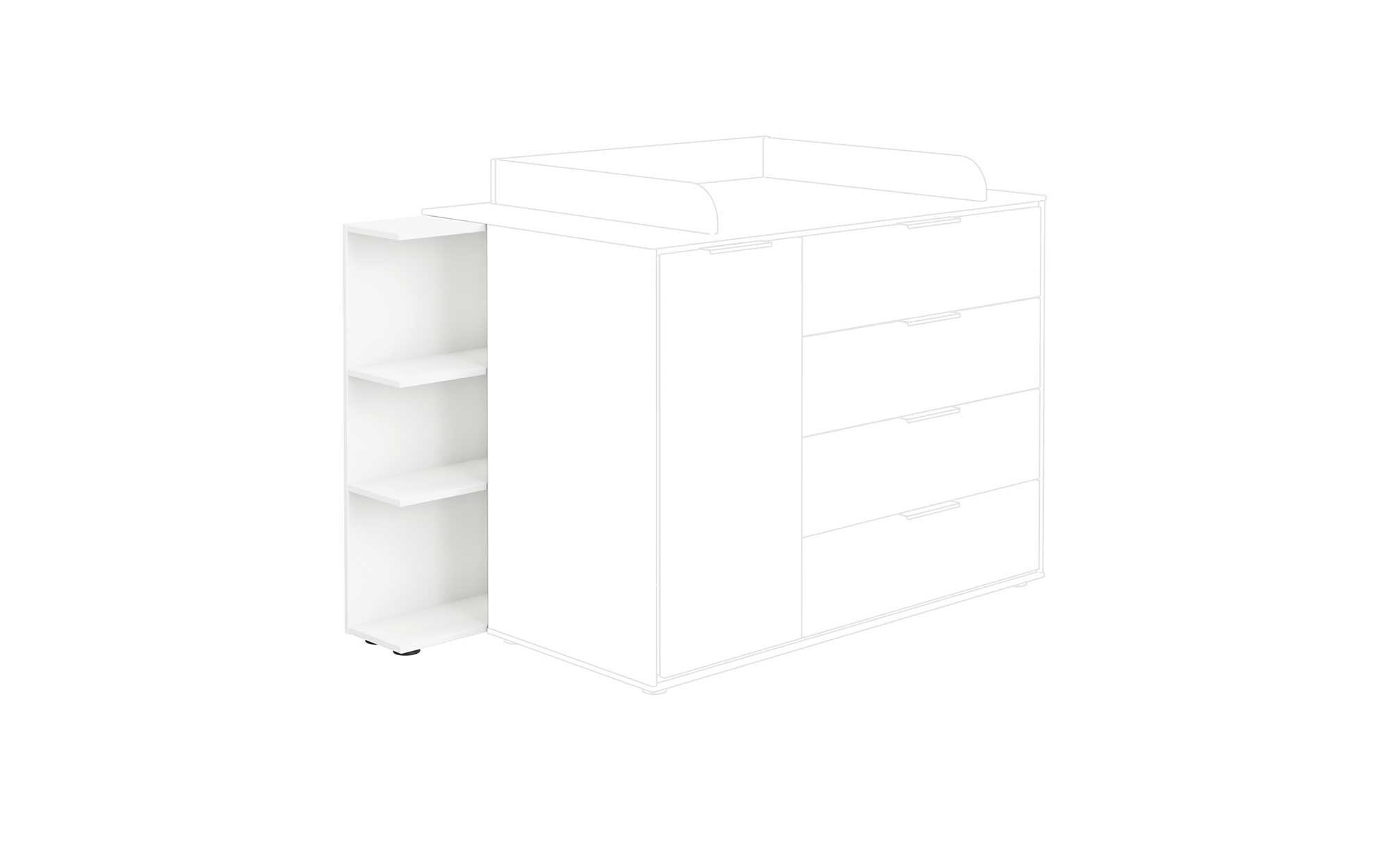 Unser Wickelkommoden-Unterstellregal Lieven gewährleistet praktische Stellflächen und sorgt dafür, dass Sie im entscheidenden Moment die richtigen Utensilien zur Hand haben.