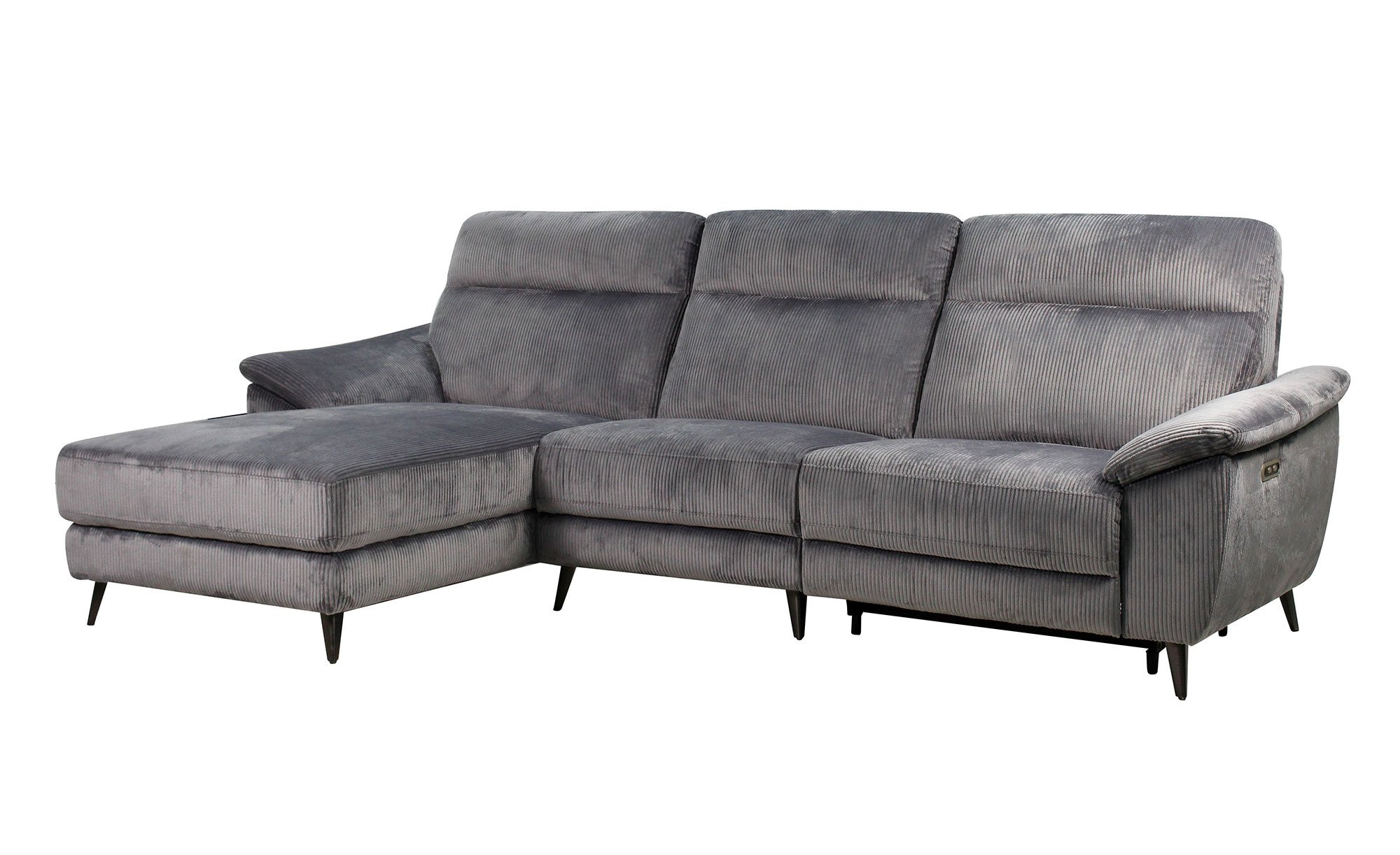 Mit der Wohnlandschaft Leander holen Sie sich ein echtes Wohlfühlmöbel in Ihr Zuhause. Das Ensemble setzt sich aus einem Mittelteil, einem großzügigen Liegesessel sowie einem rechtsseitigen Sessel zusammen und bietet damit viel Platz zum Entspannen. Der graue Cord-Bezug aus 100 % Polyester überzeugt mit angenehm weicher Haptik und angesagter Optik, während ca. 12,5 cm hohe Metallfüße in Schwarz das moderne Erscheinungsbild stilvoll abrunden.