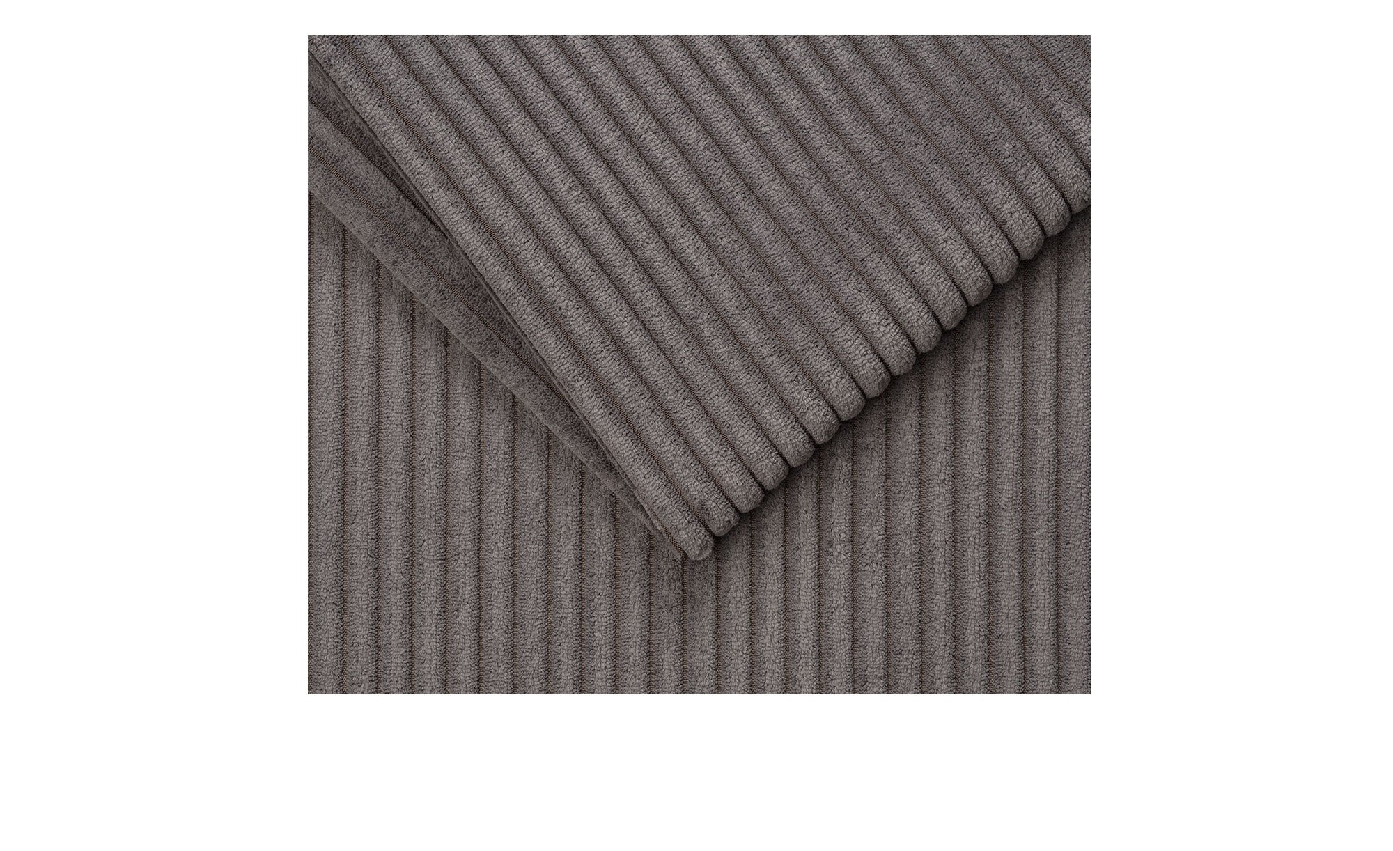 Freuen Sie sich auf einen strapazierfähigen Cord-Bezug in ash (aschgrau), der das ca. 239 x 90 x 158 cm große Möbelstück inklusive Rücken umspannt. Seine Füße bestehen aus schwarzem Kunststoff und sind ca. 7 cm hoch.