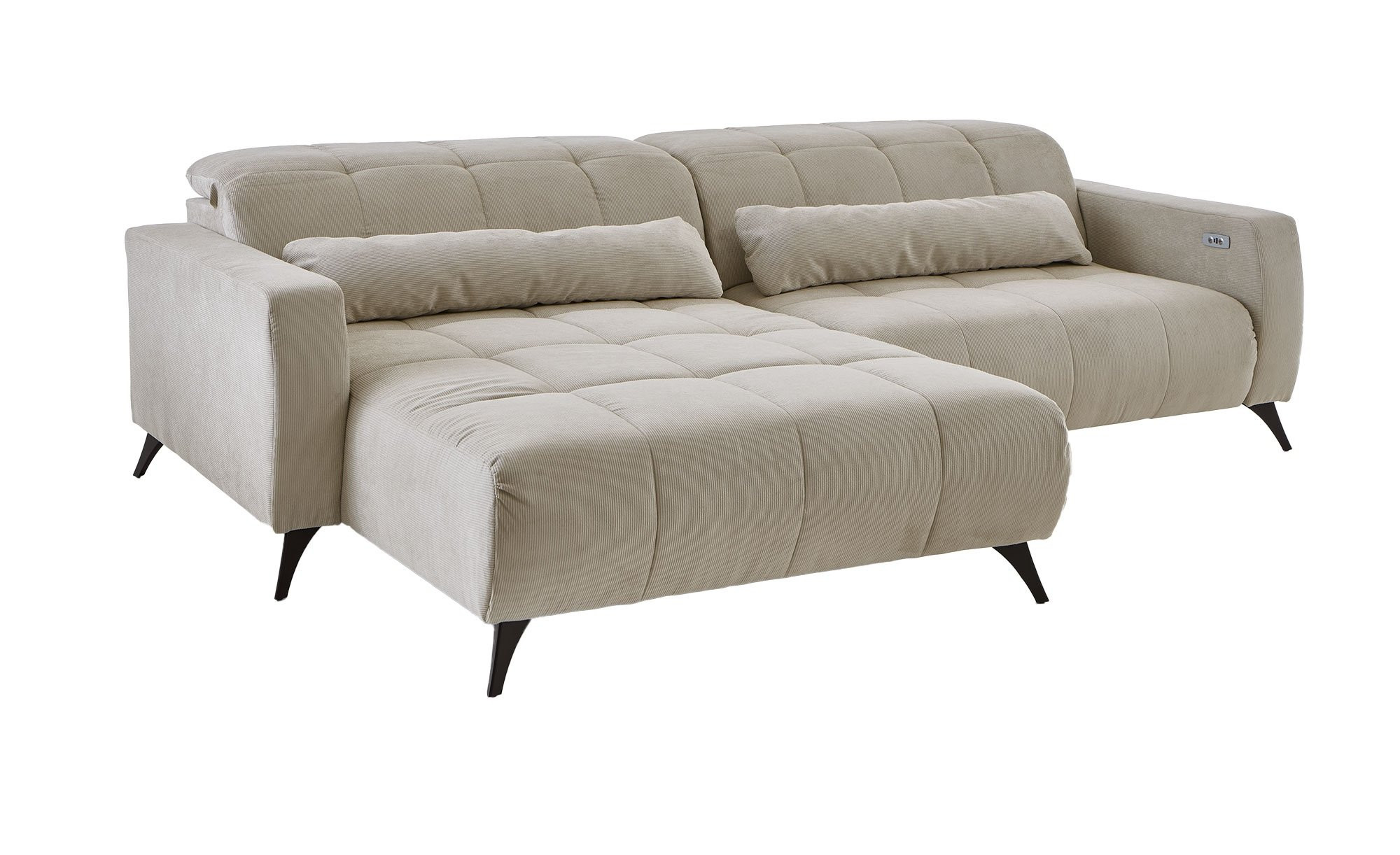 Mit einem ca. 277 cm langen rechten und einem ca. 203 cm langen linken Schenkel bietet der Artikel großzügige Sitzflächen. Für erstklassigen Komfort sorgt eine Nosagunterfederung in Kombination mit einer Schaumstoffpolsterung. Das Highlight: eine elektrische XXXL-Sitztiefenverstellung sowie manuell verstellbare Kopfteile am ca. 108 cm hohen Rücken – so richten Sie Ihre Wohlfühlzone ganz nach Wunsch ein.