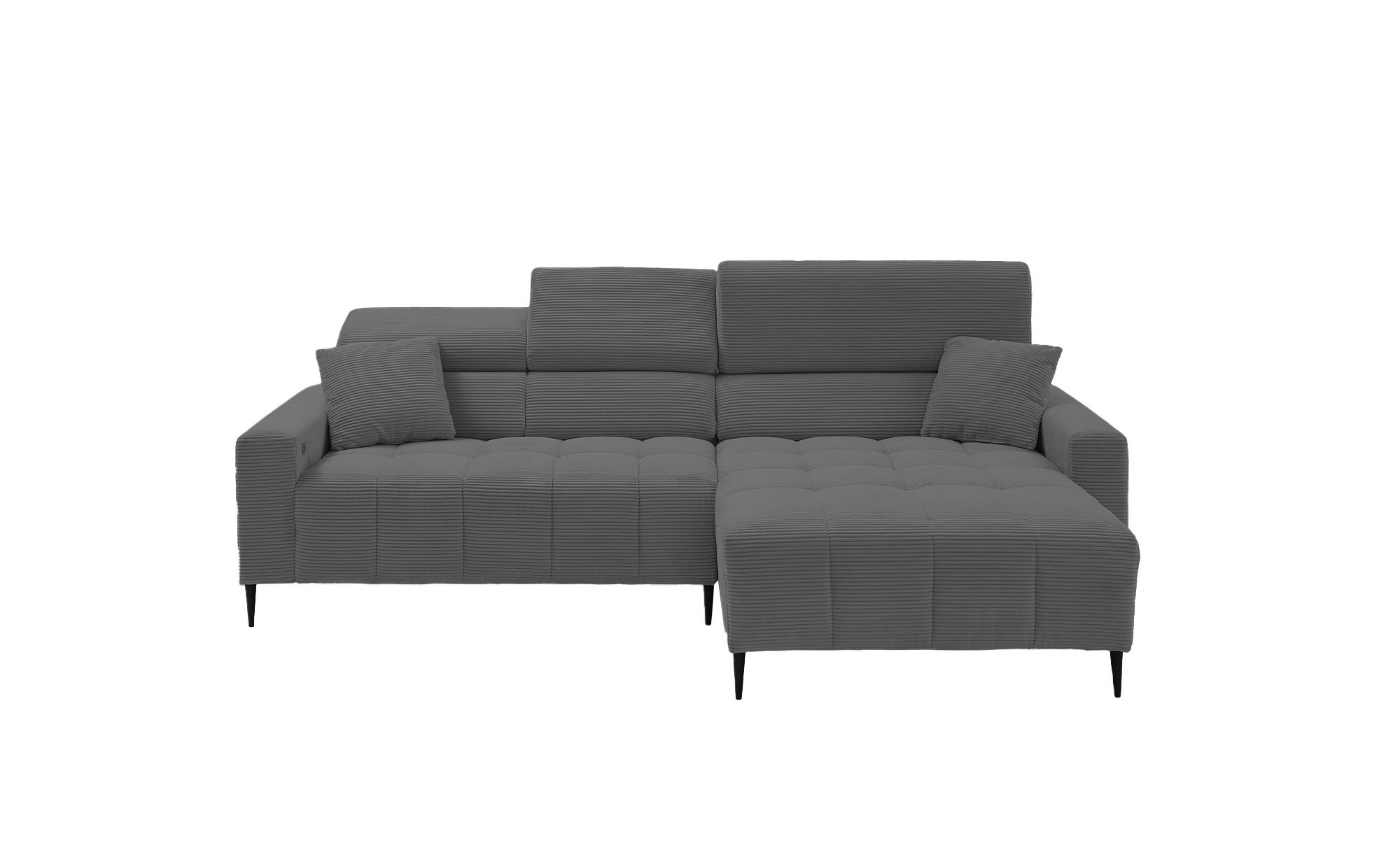 Während der rechte Schenkel des Artikels ca. 180 cm lang ist, misst der linke ca. 256 cm. Mit weichem Sitzgefühl durch Polyätherschaum auf einer Nosagunterfederung lädt er zum Niederlassen und Bleiben ein. Neben einer manuellen Kopfteilverstellung gehört auch eine elektrische Sitztiefenverstellung zum Angebot. Mit ihrer Hilfe können Sie die Sitztiefe zwischen ca. 78-100 cm anpassen.