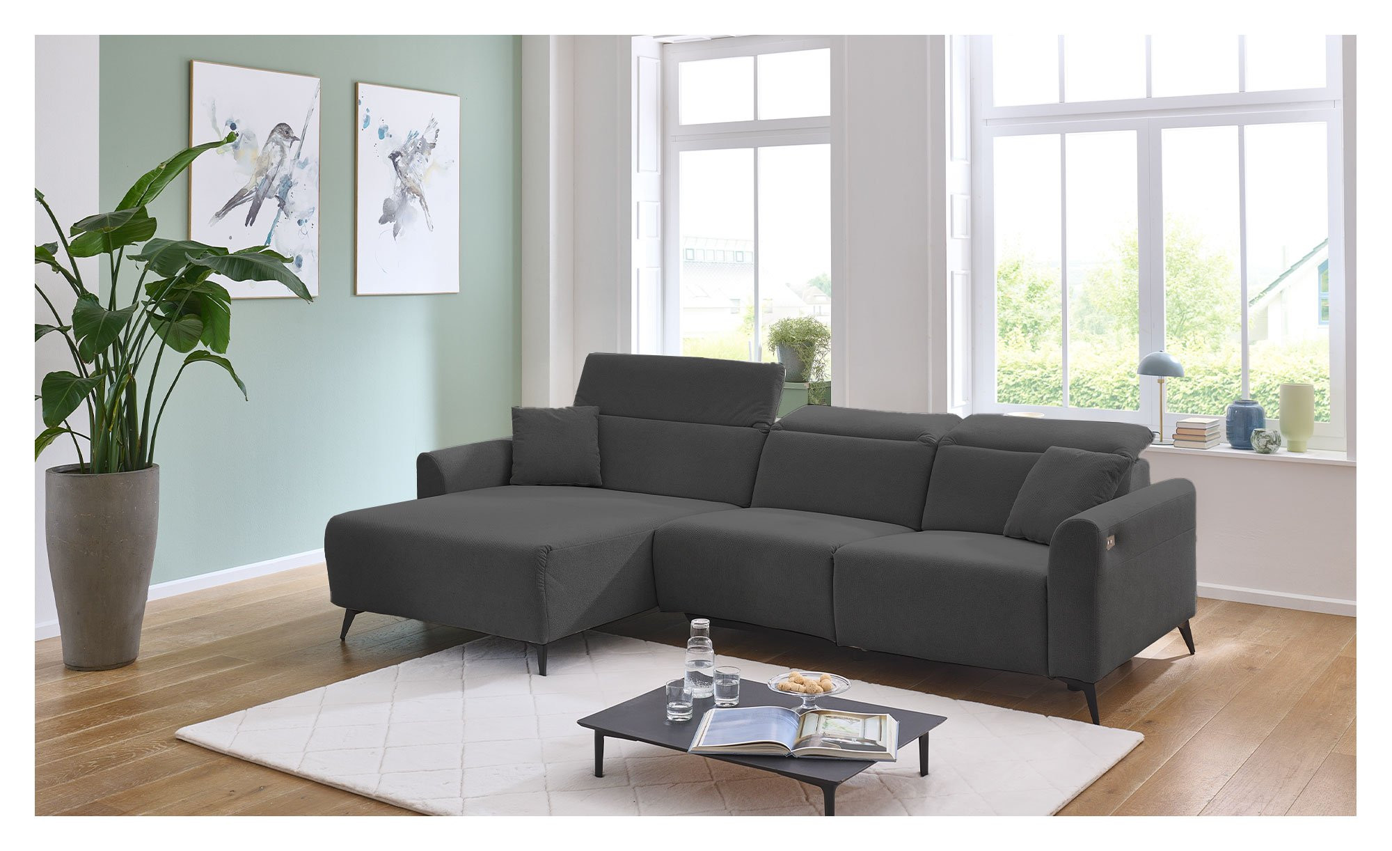 Dank einer linksseitigen Ausrichtung finden Sie für das Sofa sicherlich schnell den perfekten Platz. Hier genießen Sie dann durch die angenehm feste Polsterung aus Polyätherschaum besten Sitzkomfort. Darüber hinaus sorgt eine Nosagunterfederung für Stabilität und Elastizität. Besonderes Highlight: Im 1-Sitzer ist eine Relax-Funktion integriert! Die manuelle Kopfteilverstellung bietet Ihnen zusätzliche Flexibilität.