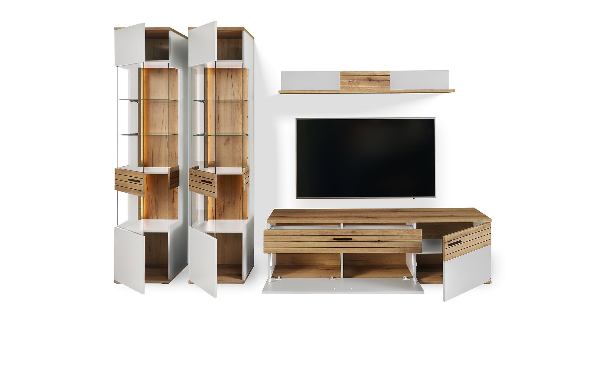 - Wohnwand Kombination: bestehend aus 2x Vitrine und 1x TV-Element
